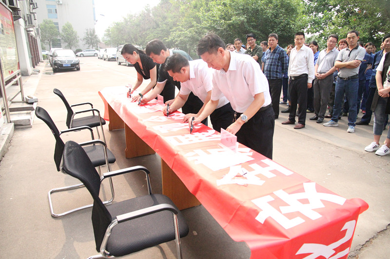6月1日上午,鲁泰物流公司全体干部职工在办公楼前举行了2016年"安全生产月"启动仪式,并在安全月条幅上郑重的签下自己的名字,提醒自己时刻牢记安全责任。通过开展"安全生产月"活动,达到强化安全发展观念,提升全民安全素质的目的。