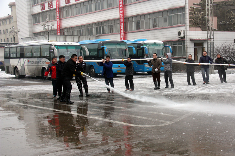 2月21日下午,一场大雪飘然而至,一夜之间,银装素裹。雪景虽美,却给矿井生产生活带来很大不便。2月22日一早,太平煤矿的百余名干部职工在政工科、工会办公室、后勤服务中心等部门的组织带领下,迅速从四面八方汇集到矿工业广场,拿起扫帚、铁锹等工具,投入到清冰除雪的"战场"。纪委书记兼工会主席邵作胜亲自现场指挥并带头参加劳动;各单位通力配合,备足铁锨、扫帚等工具;干部职工不畏严寒、分工协作,有的用铁锨清除地面结冰,有的用扫帚清扫积雪、积水,现场一片热火朝天的景象。