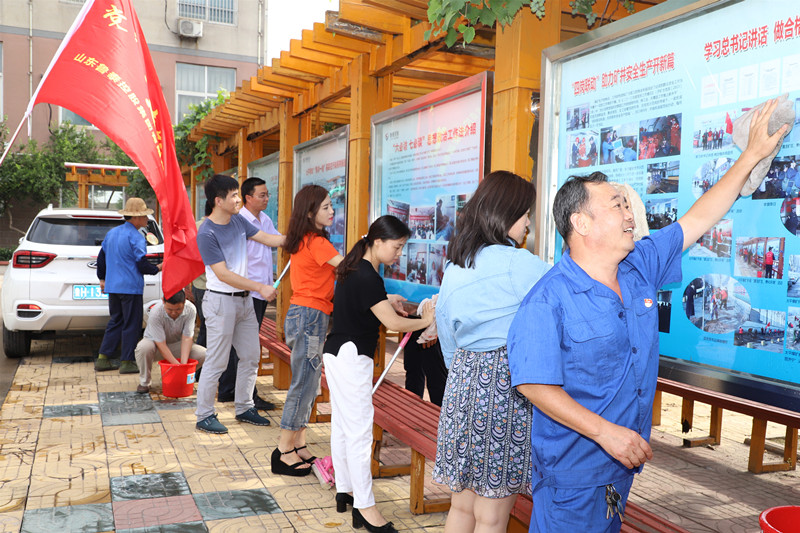 活动现场,党员、入党积极分子在党支部书记的带领下积极响应号召,自带抹布、水桶等卫生工具,以饱满的热情投身到矿区卫生清理整治活动中。大家各司其职,通力合作,充分发挥不怕脏、不怕累的精神,按照各自的志愿服务责任区,认真清理矿区内外各类牌板及道路卫生,清洗垃圾箱。经过一个多小时的共同努力,彻底清除了牌板上的积尘、污迹及卫生死角,营造了整洁优美的矿区环境。