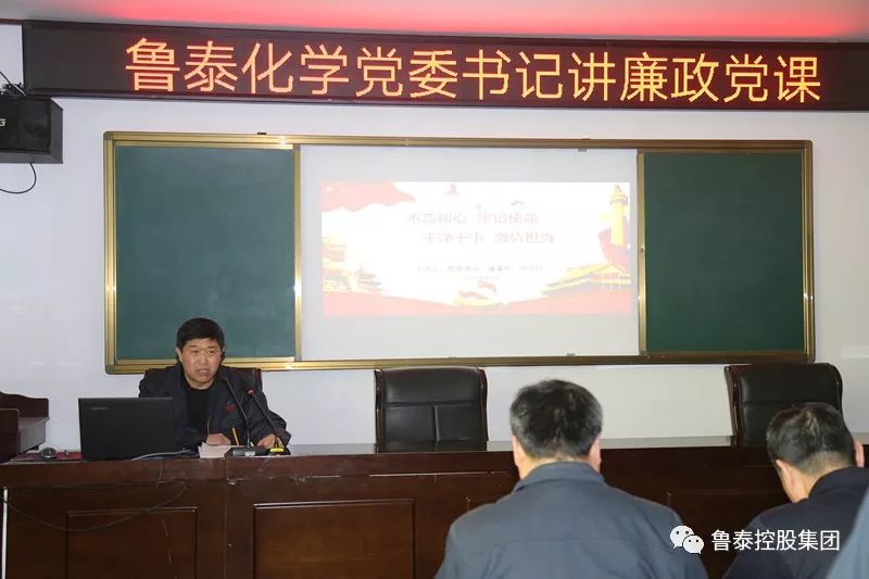 为进一步深化党风廉政建设,强化党员干部责任担当意识,12月27日下午,鲁泰化学党委书记、董事长张玉标在行政楼四楼培训中心教室为全体党员上了一堂生动、深刻的廉政党课。鲁泰化学80余名党员参加活动。