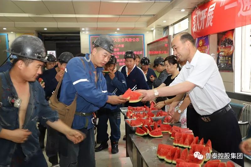 7月23日下午,太平煤矿组织开展了“夏送清凉”活动,该矿党委书记、矿长邵国华将一块块西瓜递到工友们手中,并叮嘱大家注意防暑,注重健康,确保安全生产。矿党委副书记、工会主席陈源参加送清凉活动。