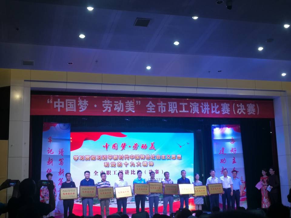 决赛阶段,市人大、团市委、市妇联、市总工会的领导现场聆听了十二组选手的精彩演讲,并为选手们加油鼓劲。现场气氛高潮迭起、精彩不断,集团公司选手孟苗、刘南组合用真挚的感情、朴实的语言、饱满的热情、忘我的投入,完美诠释了扎根奋斗在企业一线的职工不怕吃苦,甘于奉献,忠企爱岗的主人翁精神,情真意切的演讲深深打动了在座的每一位评委和观众,台下报以雷鸣般的掌声,评委打出了99.32的高分,孟苗、刘南组合最终夺得金奖,集团公司获得比赛优秀组织奖。